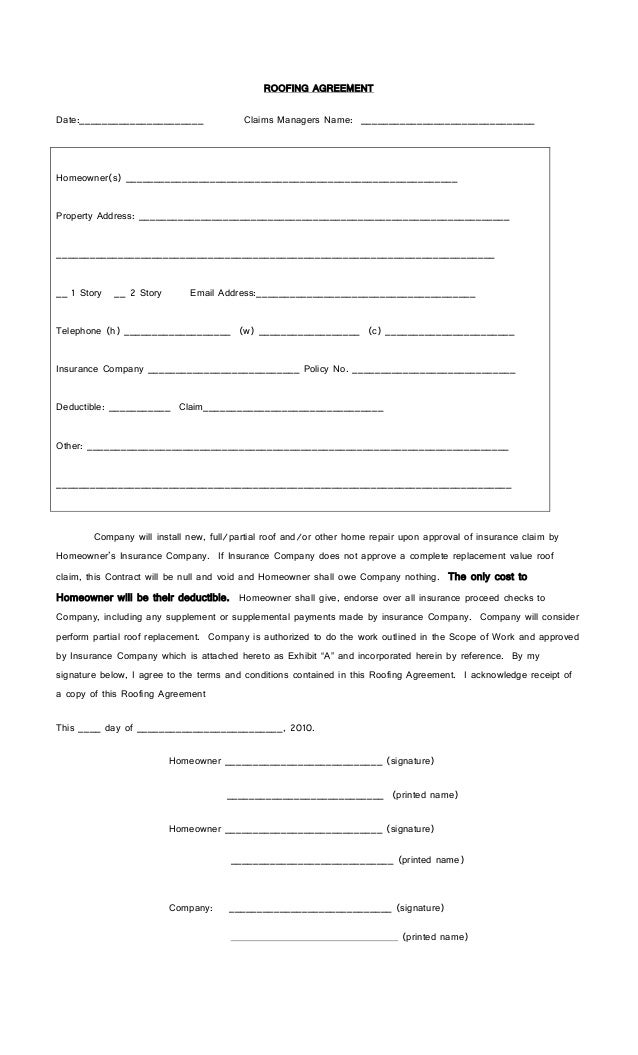Printable Roofing Contracts. Roofing contracts may be similar to any other legal contract , but that doesn't mean it's without its own nuances. One party can get law enforcement if the other party. taking into account searching for a template, search for explicit template as indicated by what you will dependence to make. In the concern that you don't have a requirement for some, blossoms, discover a template you can use rather, in this publicize quality aside cash higher than the long haul. Figure out how to endure a gander at your making somewhat more extensive, particularly in the things you buy.